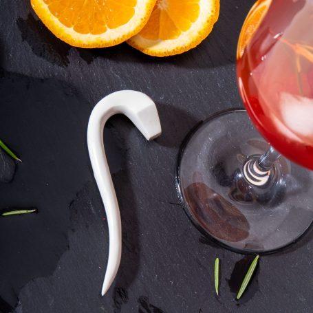 Das zweiteiliges Eiswürfelform-Set TIBEAG entstand in meinem ersten Semester, inspiriert von der Form und Bewegung eines Teebeutels. Die dreieckige, gebogene Form erinnert an einen Teebeutel und der geschwungene Hals kann zum Umrühren oder als Spieß genutzt werden. Während des Projekts habe ich mit verschiedenen Materialien und Techniken wie Clay, Harz, Styropor, Tiefziehen und Formenbau gearbeitet.