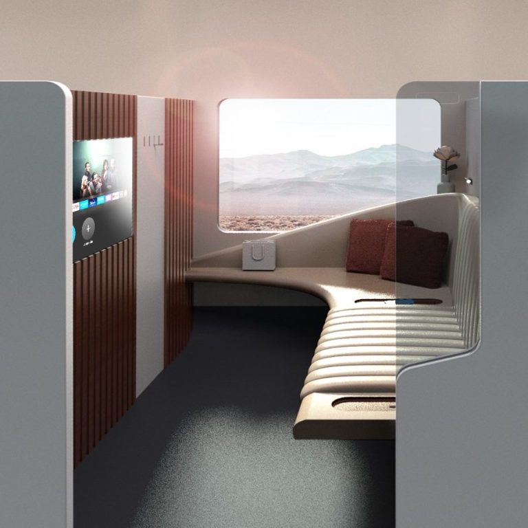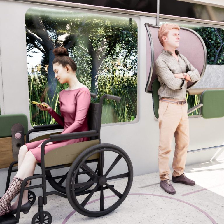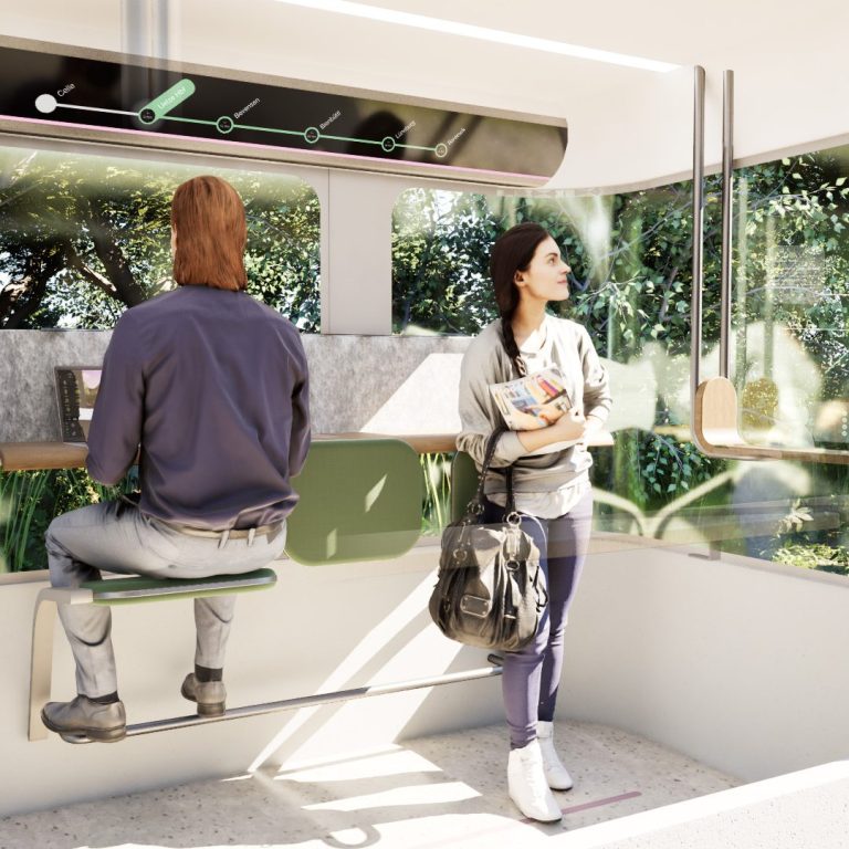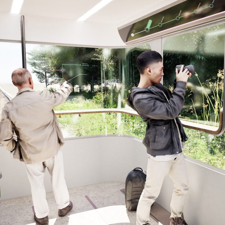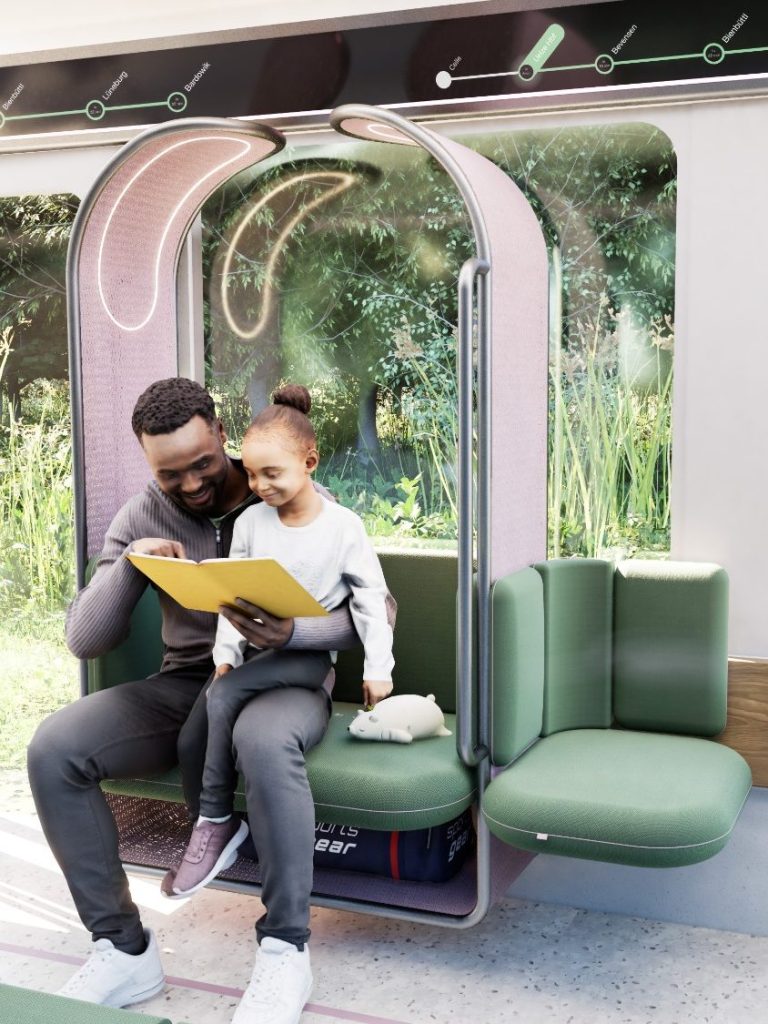 Mithilfe von neomind entstand dabei Cōra, ein detailliert ausgearbeitetes Innenraumkonzept für eine autonome Schienenkapsel. Auf Basis umfassender Nutzerforschung habe ich einen flexiblen, sicheren und emotional ansprechenden Raum entwickelt, der Mobilität als soziale Teilhabe versteht und den Zug vom reinen Transportmittel zum Lebensraum macht.