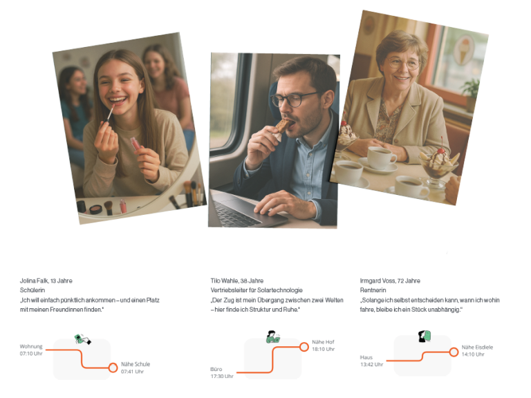 Personas haben mir dabei geholfen, typische Nutzende greifbar zu machen und ihre Anforderungen konkret zu visualisieren. Sie dienten als Leitfaden für Gestaltung und Funktionalität meiner Konzepte.